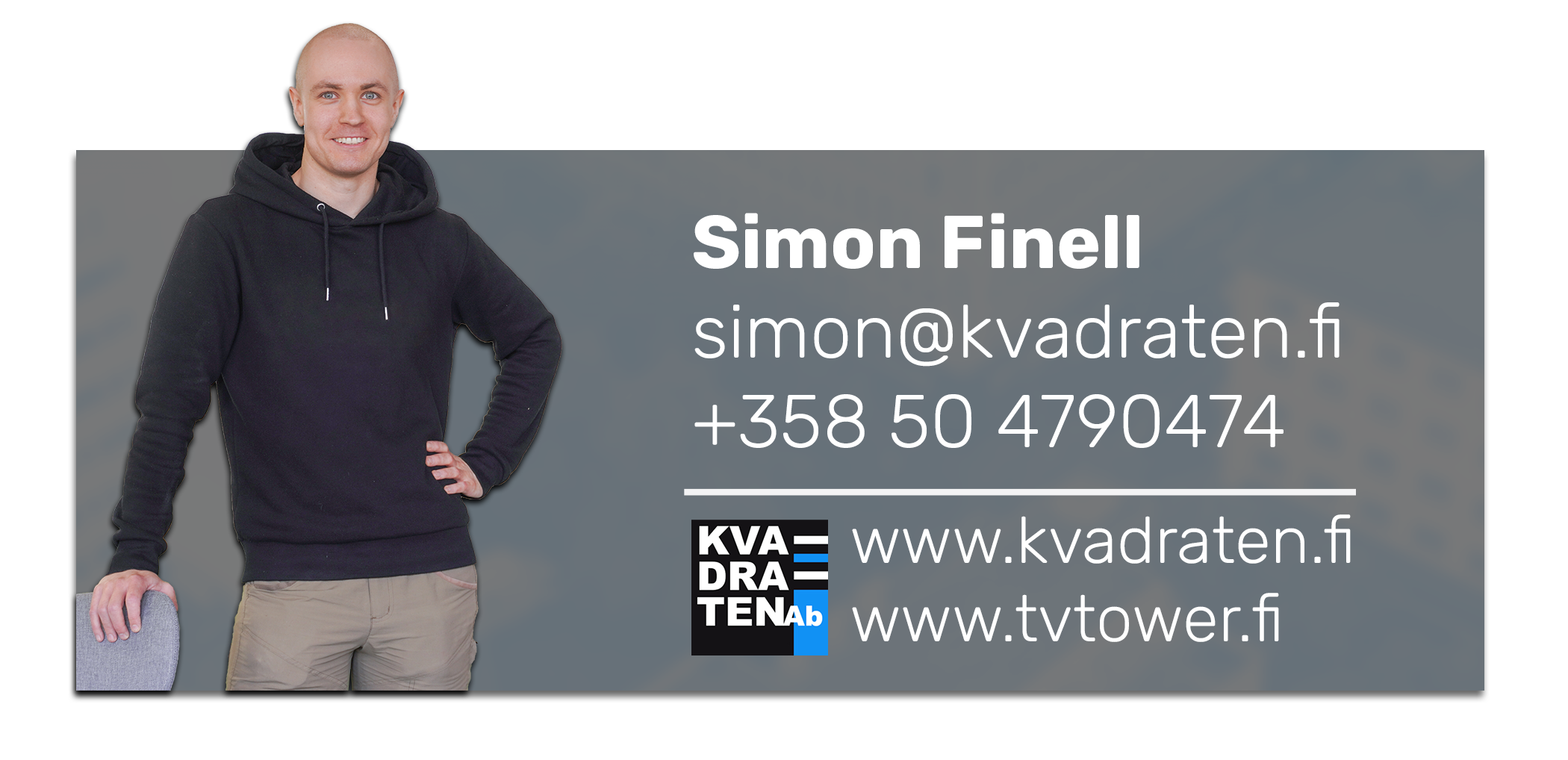 På TV-Tower når era annonser ut till en stor del av de Österbottniska konsumenterna. Till den breda och mångsidiga målgruppen hör starka konsumenter som pendlar till och från arbetet, resenärer och turister, transportförare, lokala konsumenter, och dom som åker in till Vasa för evenemang, shopping, m.m. Därför är TV-Tower lämpligt för både B2B och B2C marknadsföring för alla slags företag, tjänster, eller produkter. Vi hjälper er även att utforma annonsen utan extra kostnad.