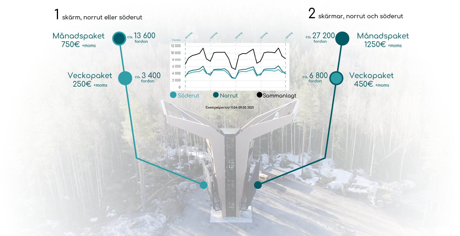 På TV-Tower når era annonser ut till en stor del av de Österbottniska konsumenterna. Till den breda och mångsidiga målgruppen hör starka konsumenter som pendlar till och från arbetet, resenärer och turister, transportförare, lokala konsumenter, och dom som åker in till Vasa för evenemang, shopping, m.m. Därför är TV-Tower lämpligt för både B2B och B2C marknadsföring för alla slags företag, tjänster, eller produkter.